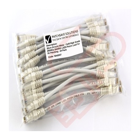 24 Pack of 15cm (6-inch) in White - Cat5e High Grade 125MHz 24AWG LSZH Patch Cables for 1U Patching