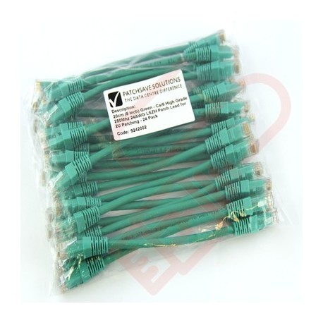 24 Pack of 15cm (6-inch) in Green - Cat6 High Grade 250MHz 24AWG LSZH Patch Cables for 1U Patching