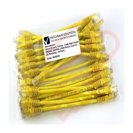 24 Pack of 15cm (6-inch) in Yellow - Cat6 High Grade 250MHz 24AWG LSZH Patch Cables for 1U Patching