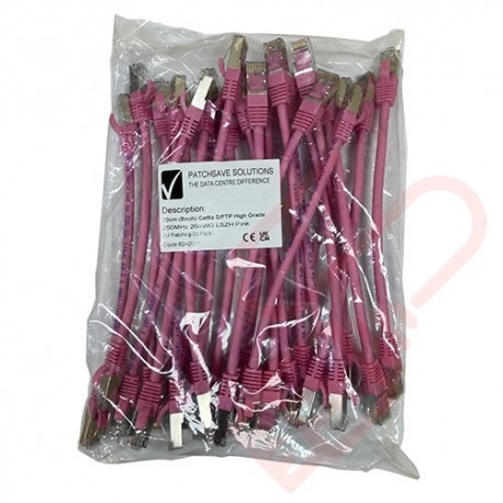 20cm Cat6a S/FTP LSZH Snagless Boot Patch Cables 24 Pack Pink