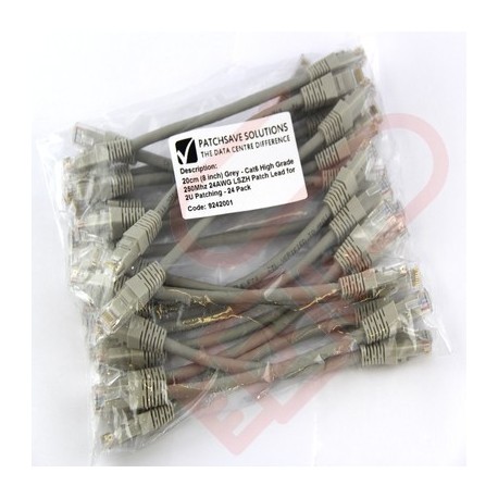 24 Pack of 20cm (8-inch) in Grey - Cat5e High Grade 125MHz 24AWG LSZH Patch Cables for 2U Patching