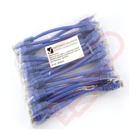24 Pack of 20cm (8-inch) in Blue - Cat6 High Grade 250MHz 24AWG LSZH Patch Cables for 2U Patching