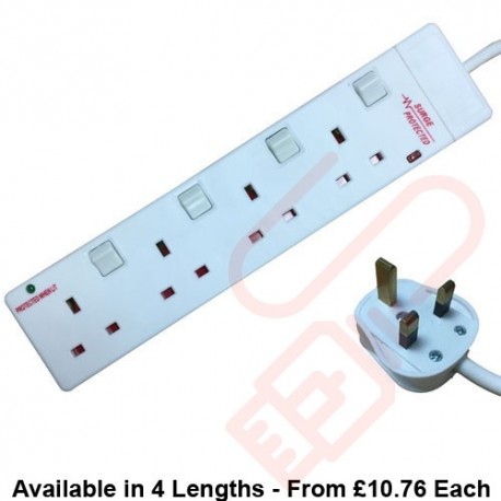 4 Way Individually Switched and Surge Protected Extension Lead White