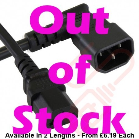 C13 - C14 IEC Angled Cables are available in both Black and Red, with combinations of left and right angled plugs and connectors in various types and lengths.