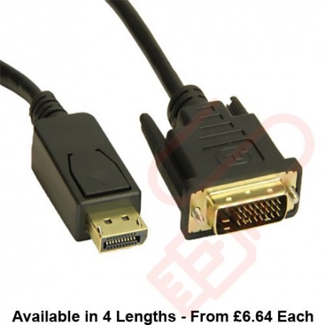 Display Port Male - DVI Male. Available as 1Mtr, 2Mtr, 3Mtr & 5Mtr Length. |