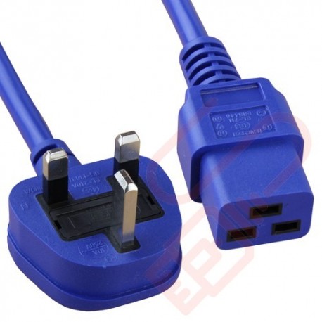 UK Plug (10 Amp) to C19 PVC Power Cable 2m Blue