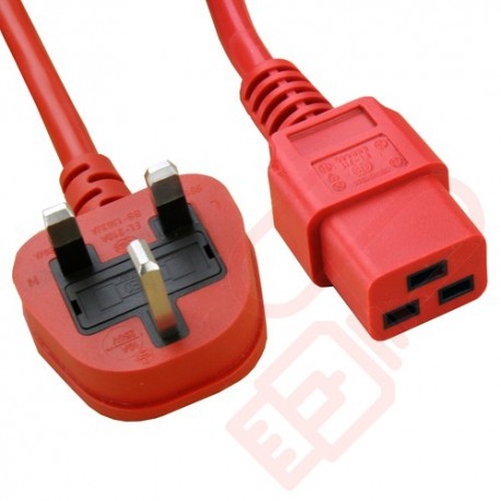 UK Plug (10 Amp) to C19 PVC Power Cable 2m Red