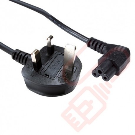 UK Plug (5 Amp) to C5 Clover Leaf Angled Right PVC Power Cables 1.8m Black