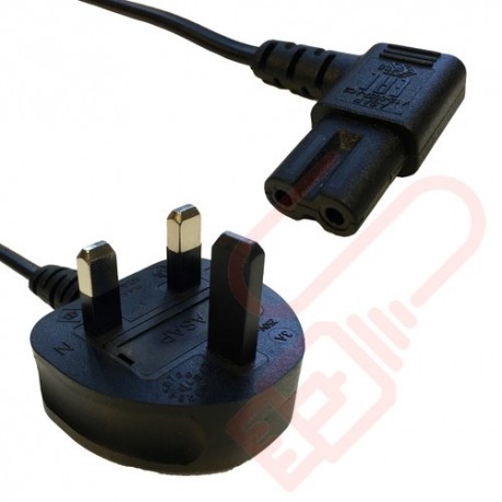 UK Plug (3 Amp) to Right Angled C7 Figure of 8 Power Cable 1.8m Black